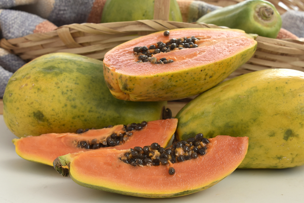 Papája je exotické ovoce, které tvarem připomíná hrušku. Má zelenožlutou slupku a sladkou oranžovou dužinu. Uvnitř se nacházejí černá semínka, která se běžně nekonzumují, ale lze je použít jako náhradu černého pepře díky jejich ostré chuti.